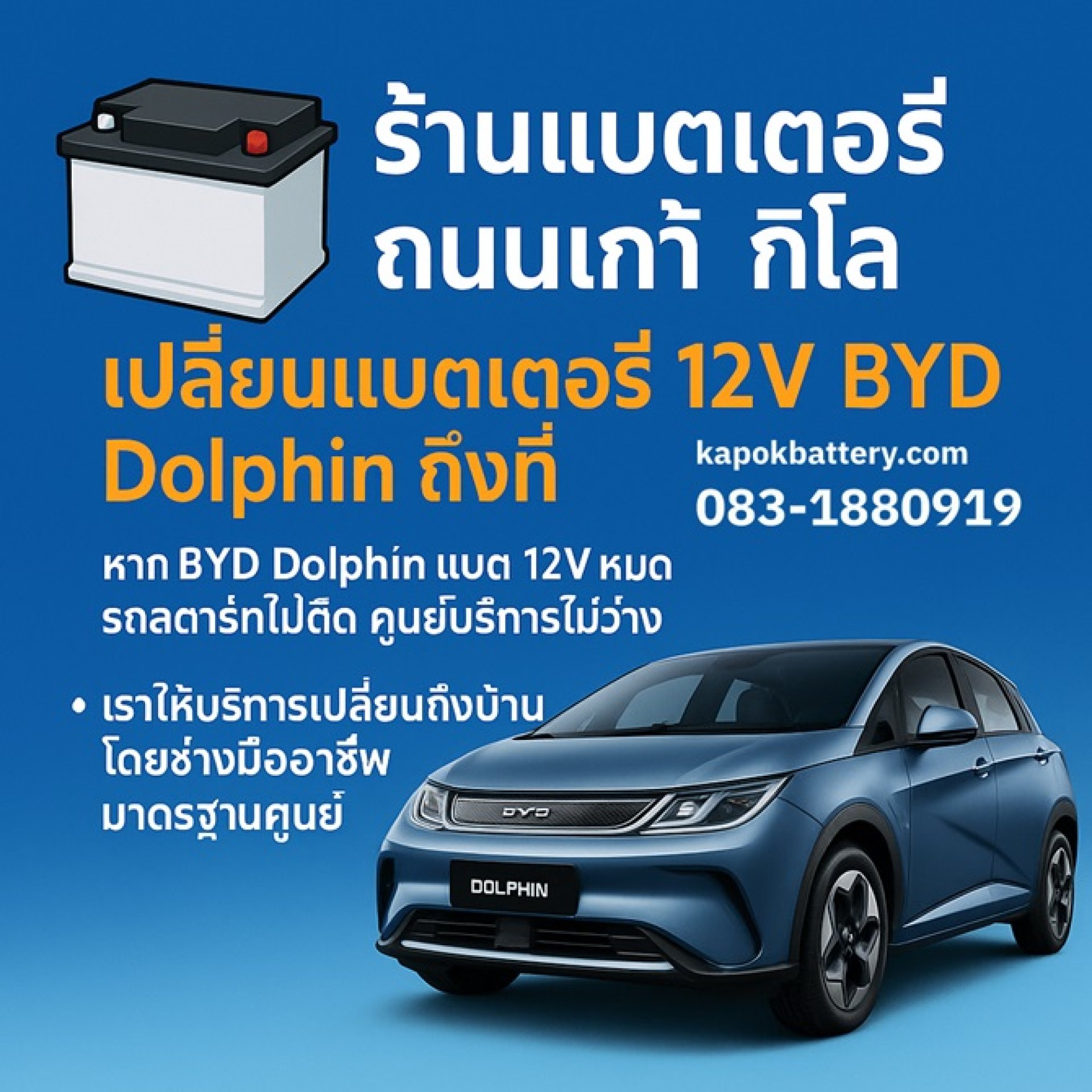 ร้านแบตเตอรี่ถนนเก้ากิโล บริการเปลี่ยนแบตเตอรี่ 12V BYD Dolphin ถึงที่